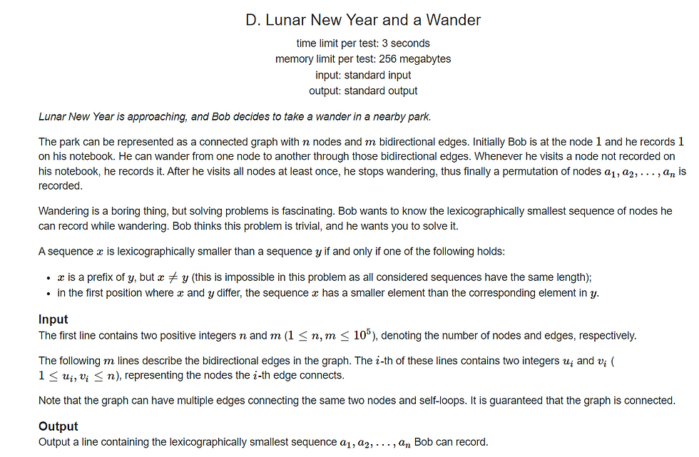 Since we want lexicographically smallest order of visits, it will always be best to start from node 1